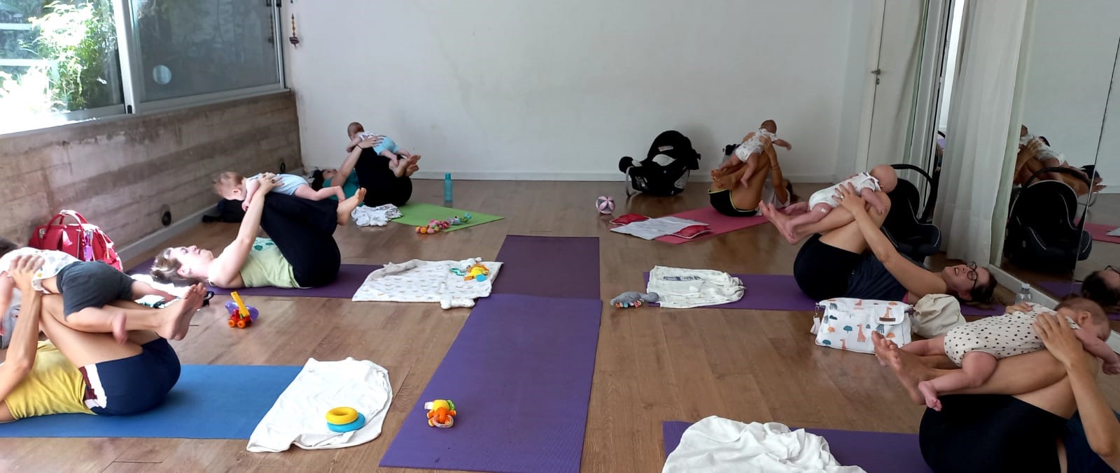 Post Natale Yoga is not only about poses but also about breathing, singing, and dancing together with the babies. It is a session to have fun and relax and to offer moms the possibility of doing an activity outside of their homes and to connect with other mothers.